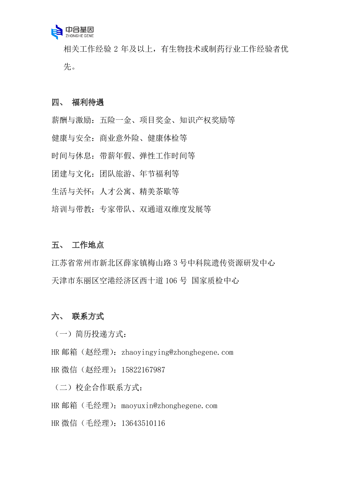 中合基因科技(常州)有限公司招聘简章